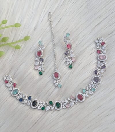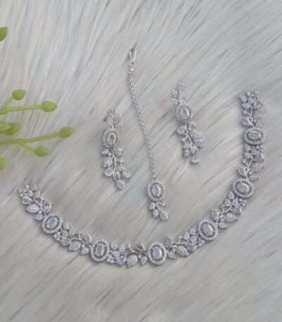 appears to be an antique silver-plated party bridal choker necklace set