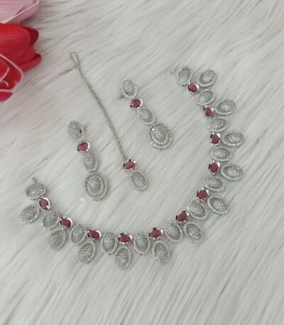 Login to see pricesShort Description: Elevate your ethnic look with this stunning handcrafted jewelry set. Featuring vibrant ruby-red stones and delicate white pearl drops, this gold-plated necklace set is designed to add a touch of royalty to your attire. Perfectly suited for weddings, festivals, and special occasions.