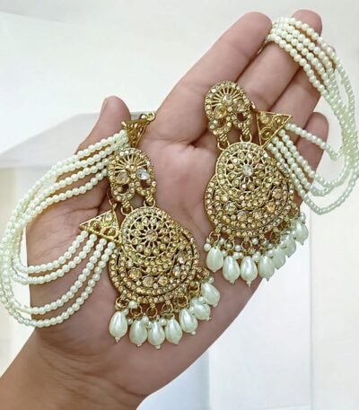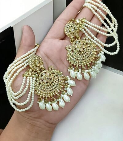 Login to see pricesgolden tana earrings featuring a multi-layered pearl chain design.