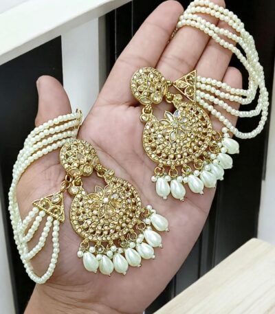 Login to see pricesgolden tana earrings featuring a multi-layered pearl chain design.