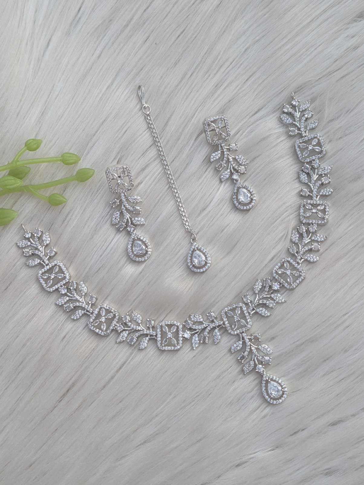 appears to be a silver-plated American diamond necklace set