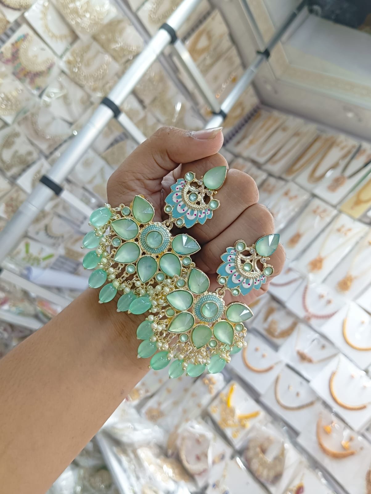 earrings are traditional Indian Kundan and pearl chandbali earrings (Copy)