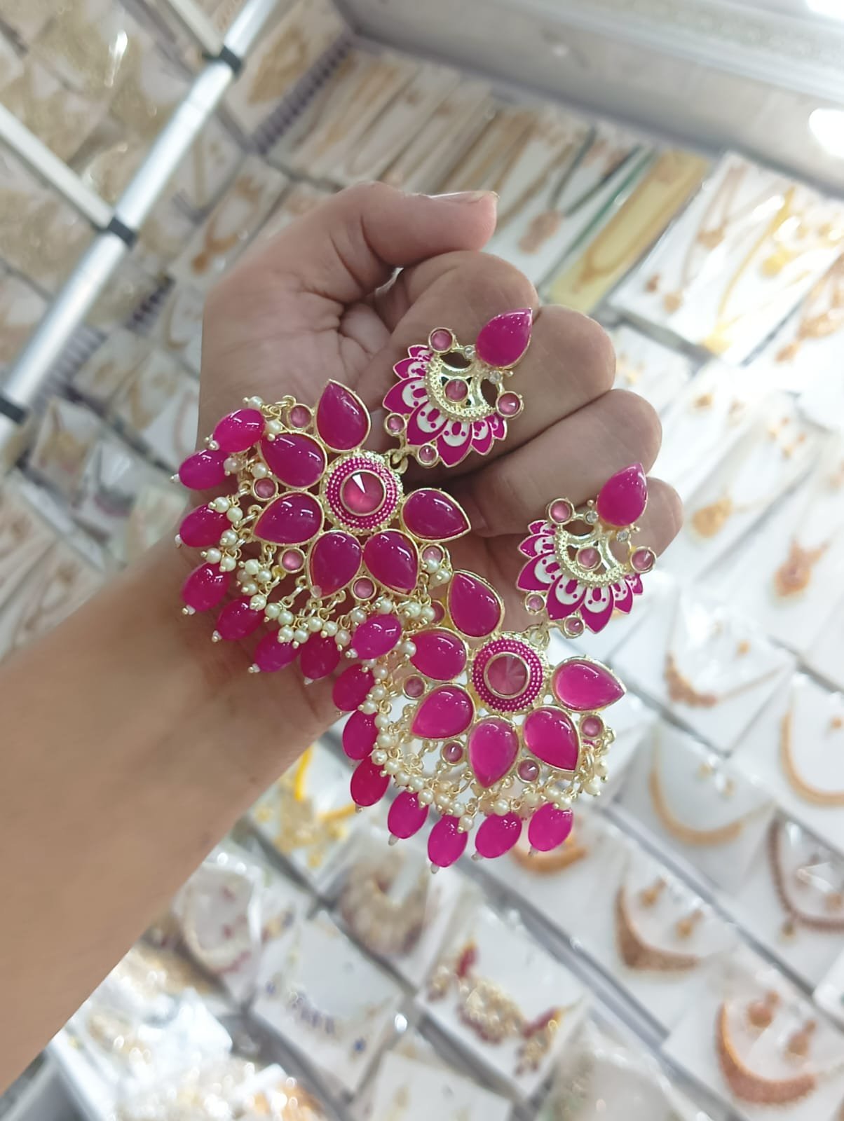 earrings are traditional Indian Kundan and pearl chandbali earrings