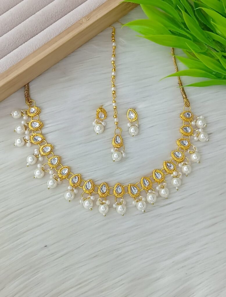 Elegant Gold-Plated Pearl Choker Necklace Set with Matching Earrings