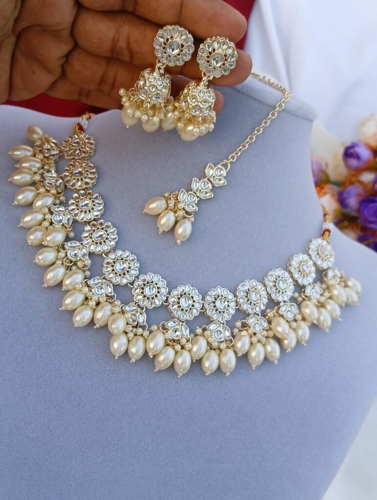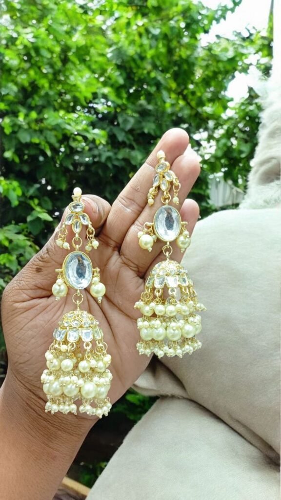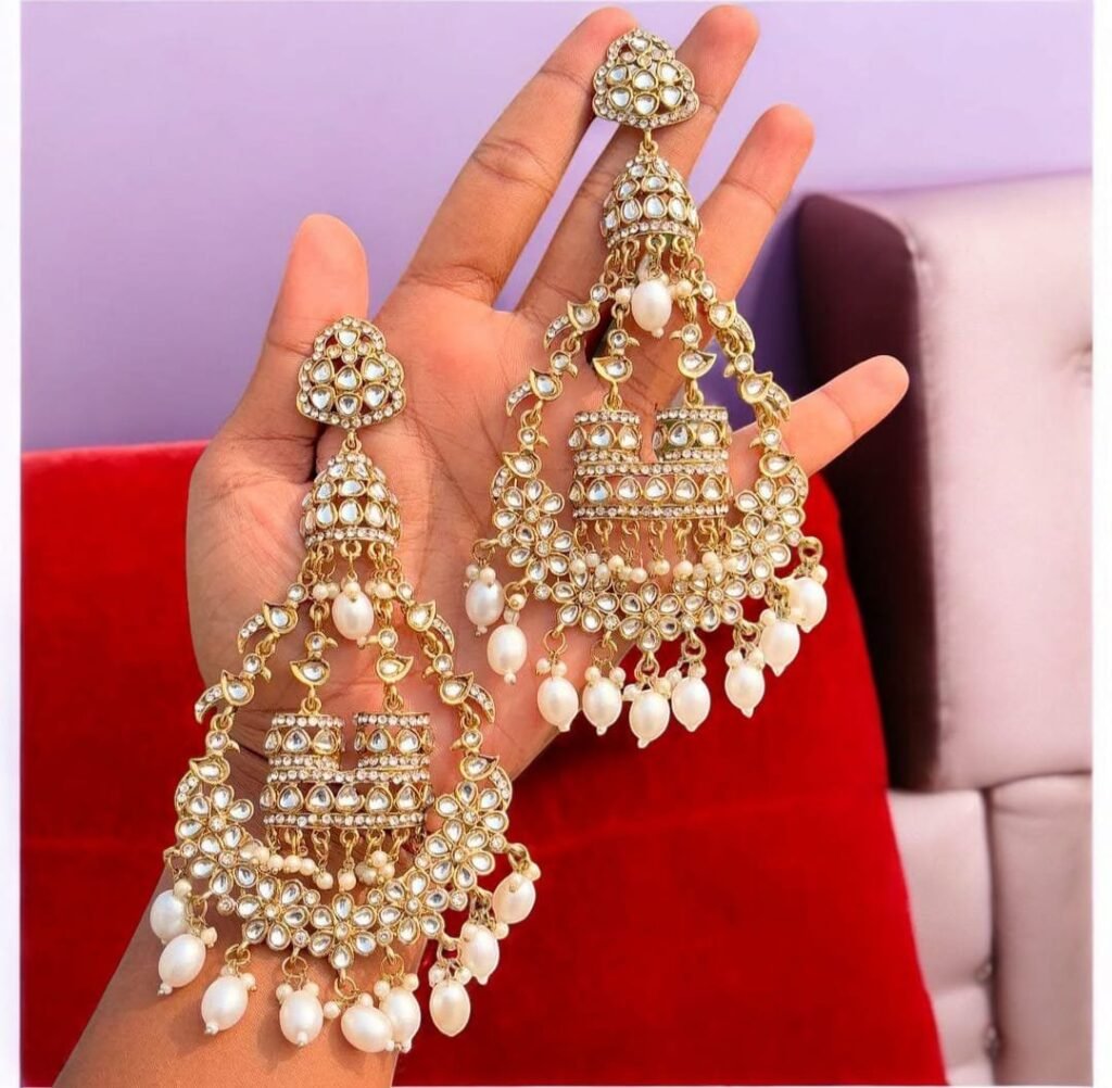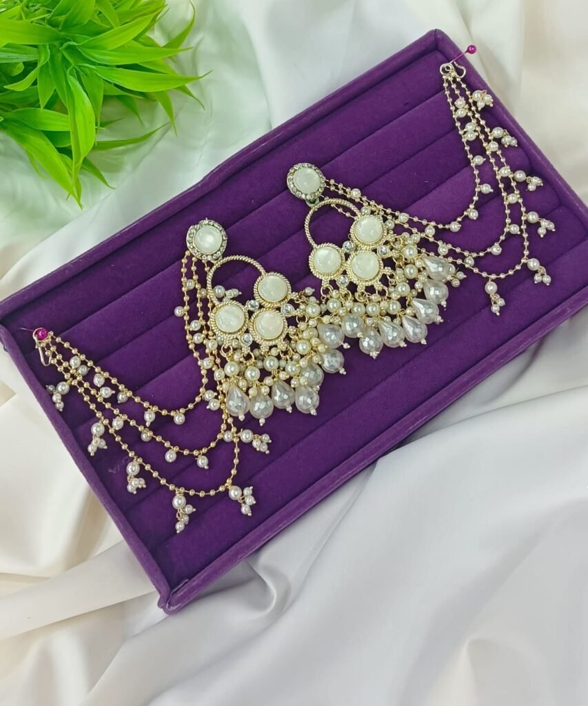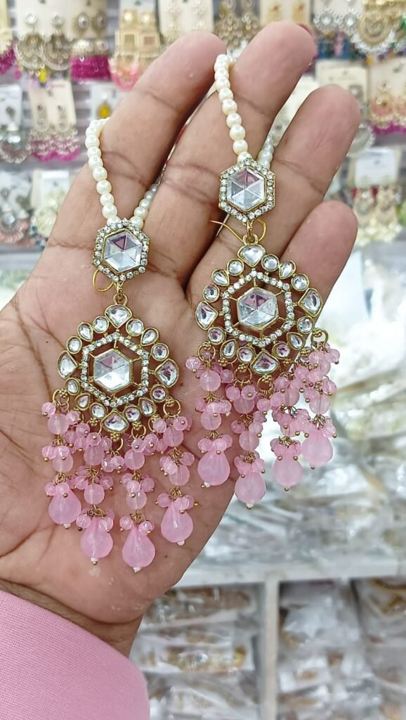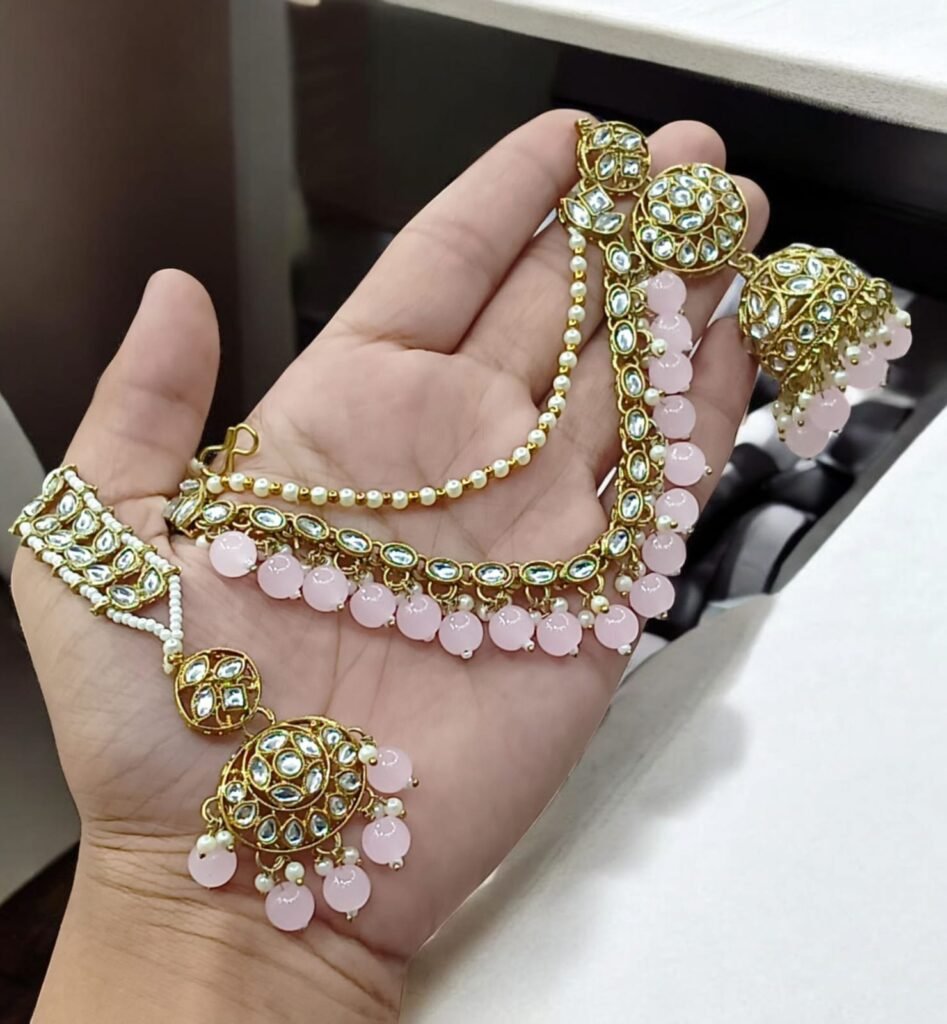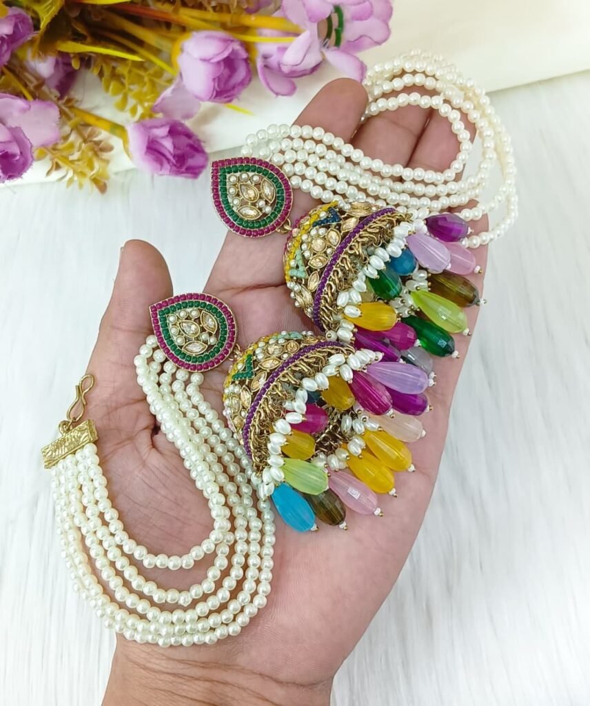 Embellishment: High-quality faux pearls (pinkish tint) and tiny bead hangings for a graceful dangling effect.
