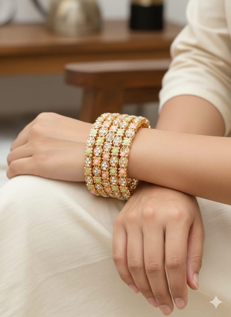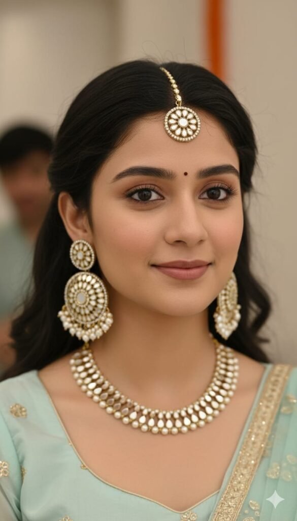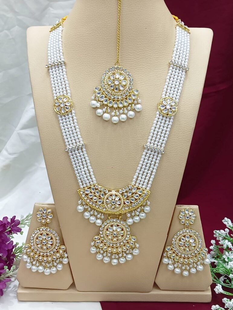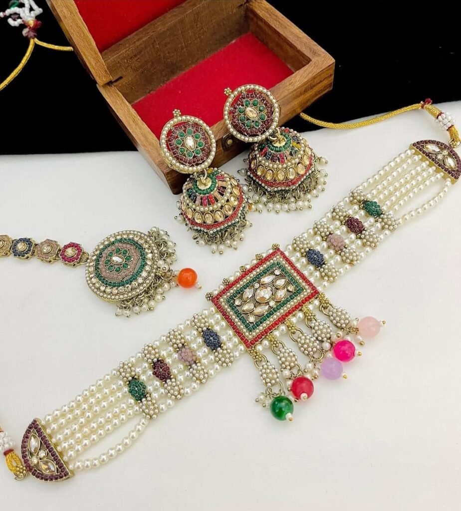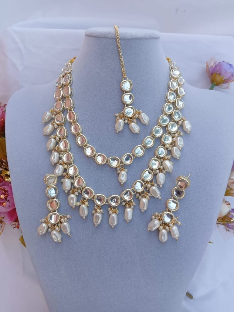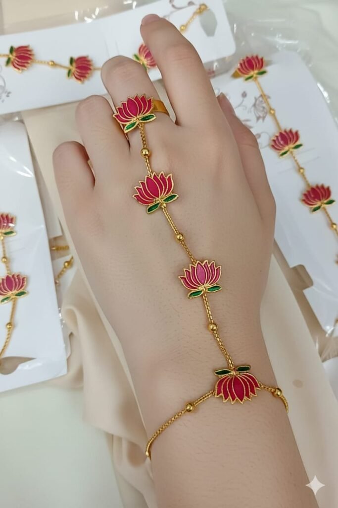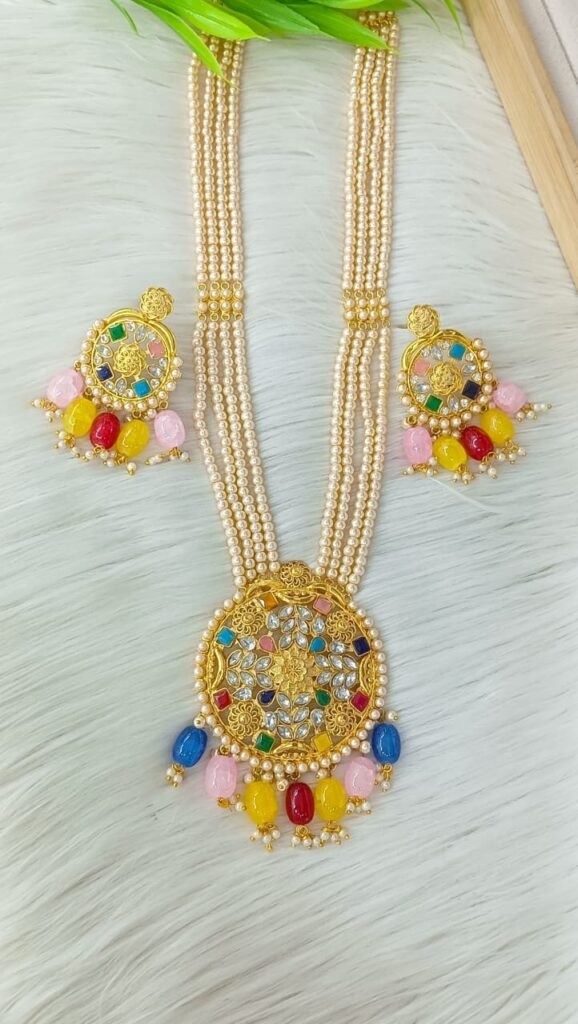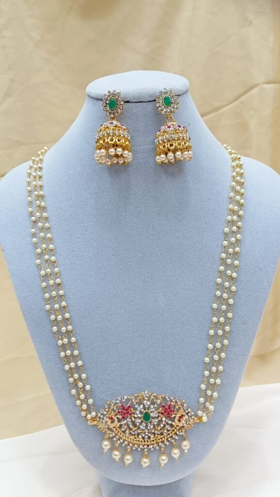 Embellishment: High-quality faux pearls (pinkish tint) and tiny bead hangings for a graceful dangling effect.