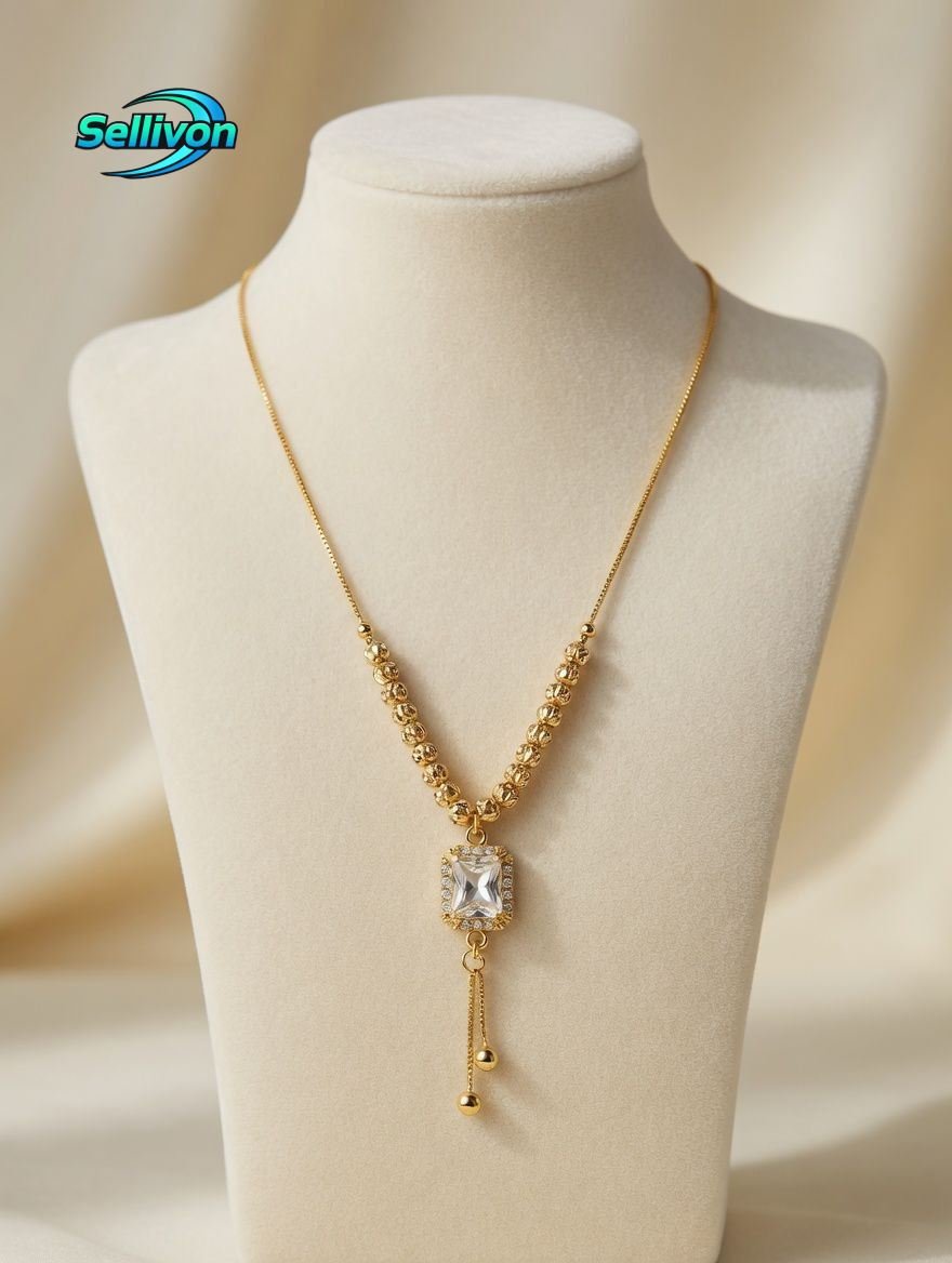 gold-colored pendant necklace