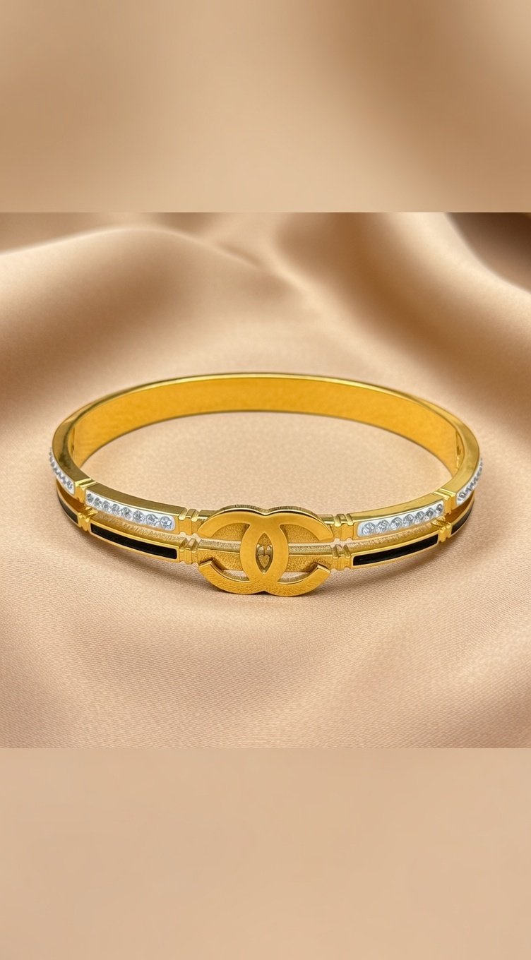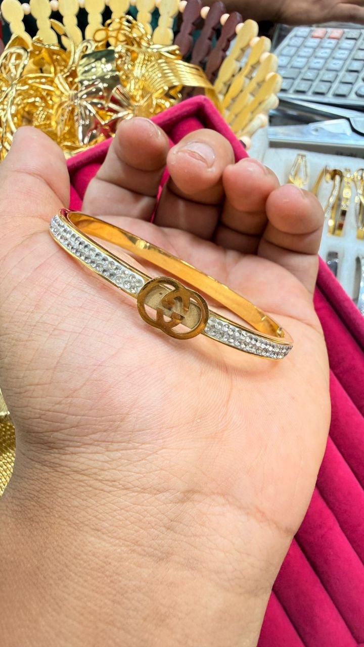 gold-plated, white cubic zirconia studded bangle-style bracelet
