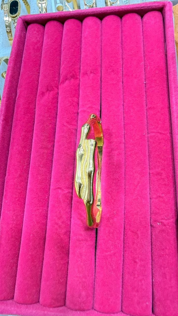 This is a gold-plated nautical-themed bamboo bangle bracelet,