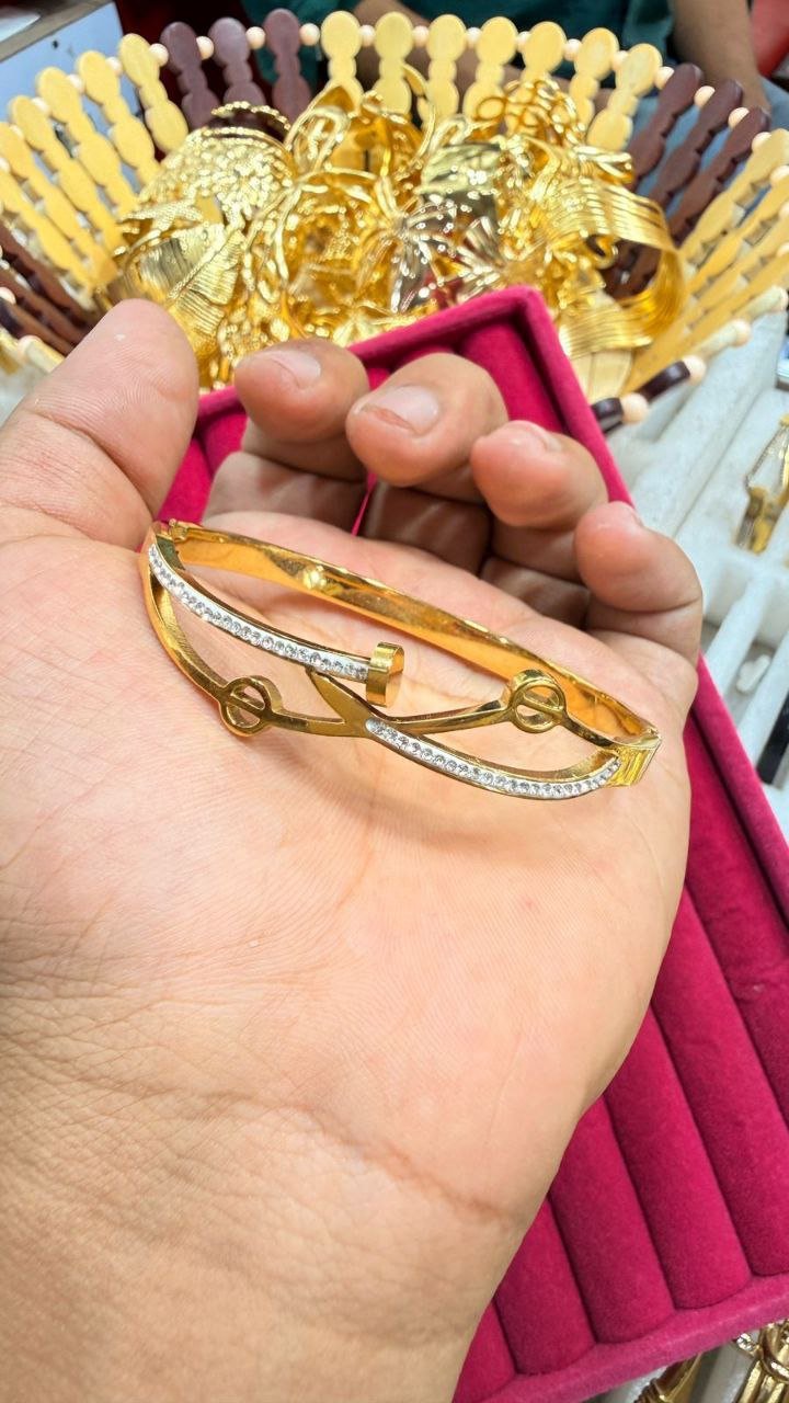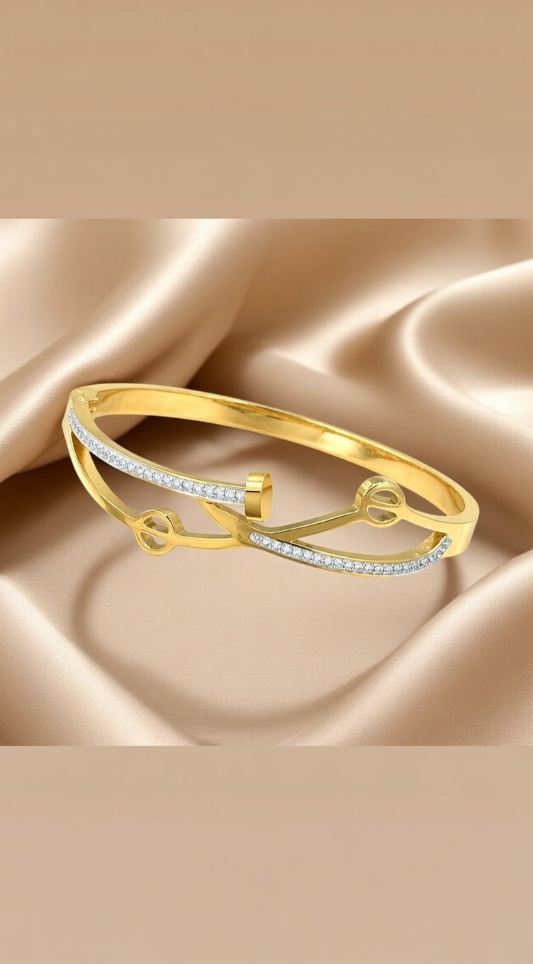 gold-plated, white cubic zirconia studded bangle-style bracelet
