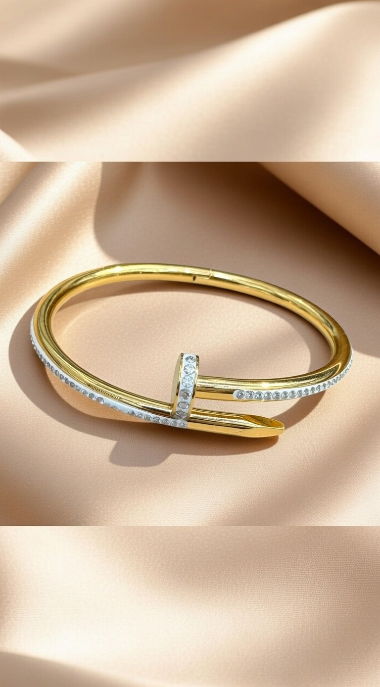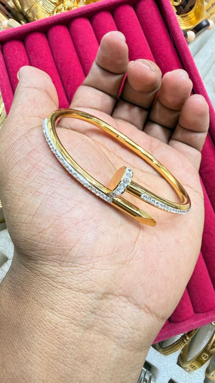 gold-plated bangle bracelet decorated with cubic zirconia stones.
