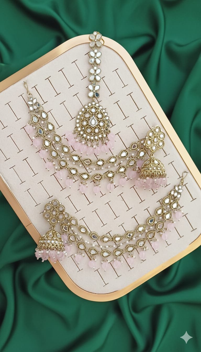 Pakistani-style mirror worked jhumka earrings and a tikli