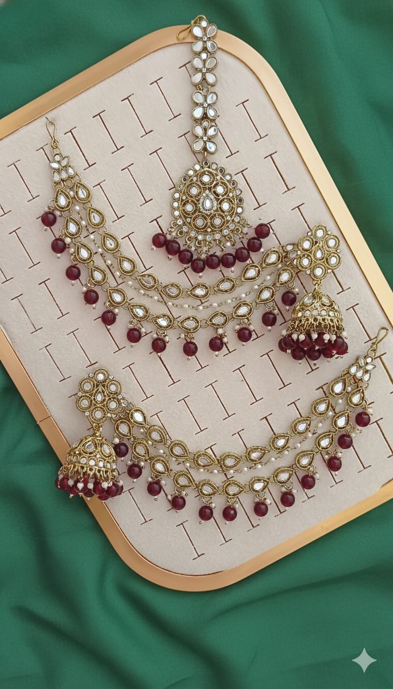 Pakistani-style mirror worked jhumka earrings and a tikli (Copy)