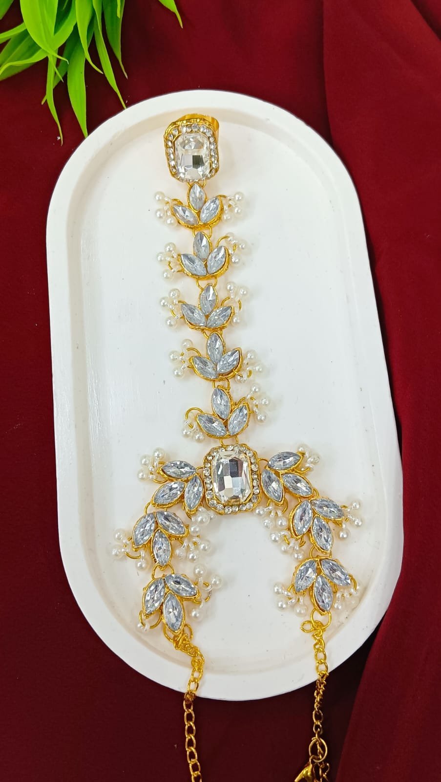 Pakistani-style mirror worked jhumka earrings and a tikli